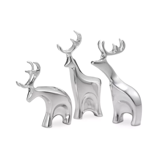 The trio of artful antlered reindeer in the Nambé Mini Blitzen set brings contemporary flair to a holiday display.