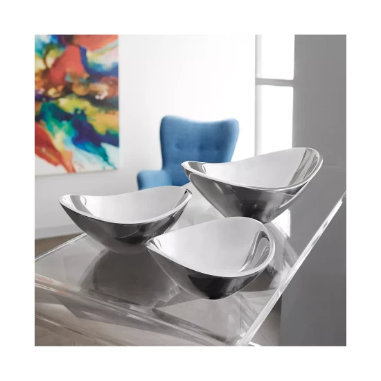 A contemporary update to classic serveware, the Triple Condiment Server includes three alloy bowls that rest on a wood cradle. Easily passed around the table as a set, or individually, the Triple Condiment Server includes three wood serving spoons, making this piece great for presenting a trio of dipping sauces, nuts, dried fruits and more.