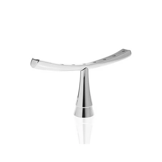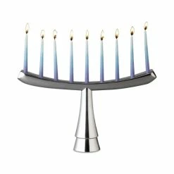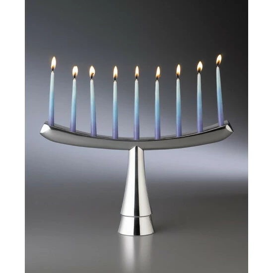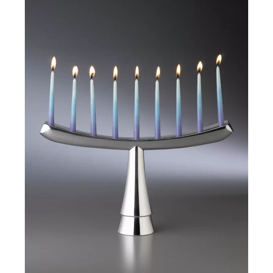 A modern, minimalist take on the traditional Hanukkah menorah. Crafted by Marilyn Davidson in sleek alloy metal. Measures 12.5″ x 7.5″.