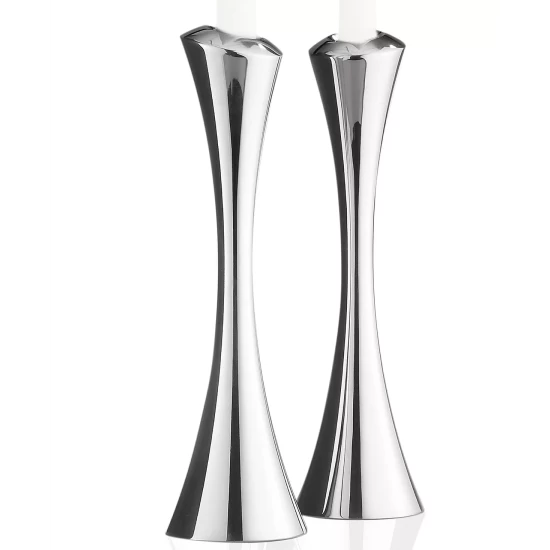 Named for Zeus’ intrepid eagle, Aquila candlesticks possess a quiet power and strength. Distinguished by a gently turning spiral and clean lines in Nambe alloy, this statuesque pair illuminates your table with modern grace. Designed by Lou Henry.