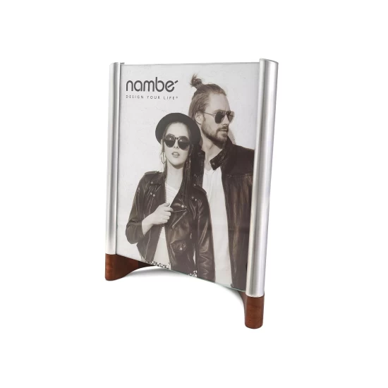 A striking combination of wood and metal, the Sky View Frame’s contemporary design displays a favorite photo suspended between two Alloy pillars that rest on a curved wood base. Set it on a side table or mantel to be admired.