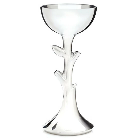 This sculptural Kiddush cup by designer Marilyn Davidson shines with a high luster on the Shabbat table, reminding everyone of the story it represents. Beautiful as a wedding or holiday gift. From Nambe.