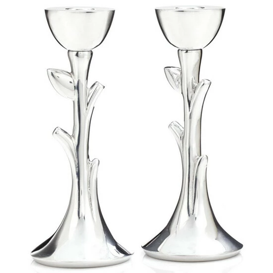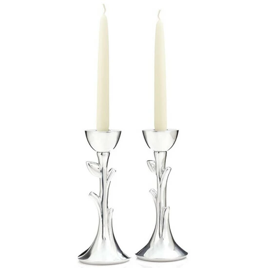 These lustrous Sabbath candlesticks by designer Marilyn Davidson have a subtle, sculptural quality that gives them the appearance of stretching toward the sky. From Nambe.