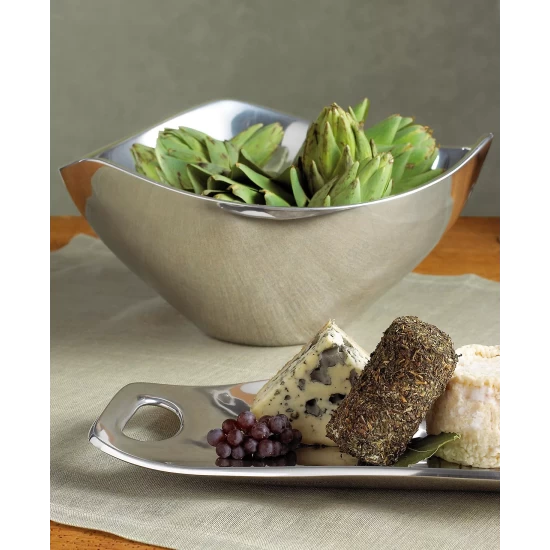 The Orbit Dinnerware Collection draws inspiration from the angled trajectory of a planet in orbit. With one side slightly raised, the design adds sophisticated, contemporary style to any tabletop. Great for serving side dishes, salads or pasta restaurant style, this is a piece that will become a regular addition to your dining table.