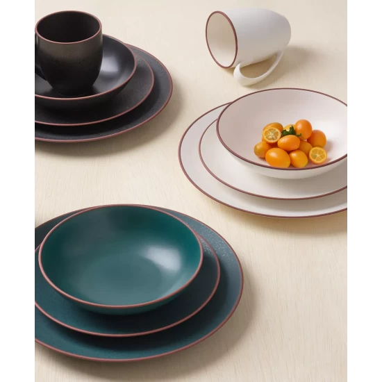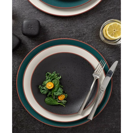 Available in three color ways, onyx, jade and agate, Taos dinner plates can be mixed or matched and are ideal for casual dining.